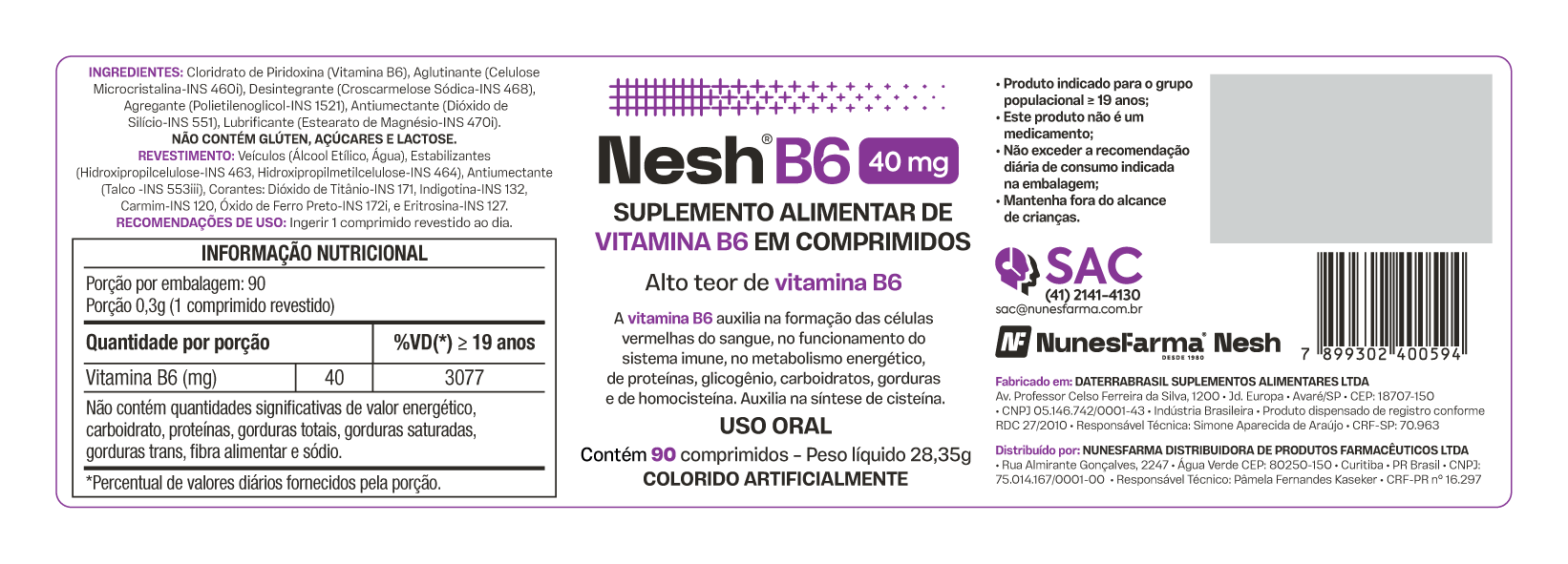 Cada cápsula mole de Nesh B6 contém 40 mg de cloridrato de piridoxina , a sugestão de uso é de 1 cápsula ao dia, preferencialmente antes da refeição.
